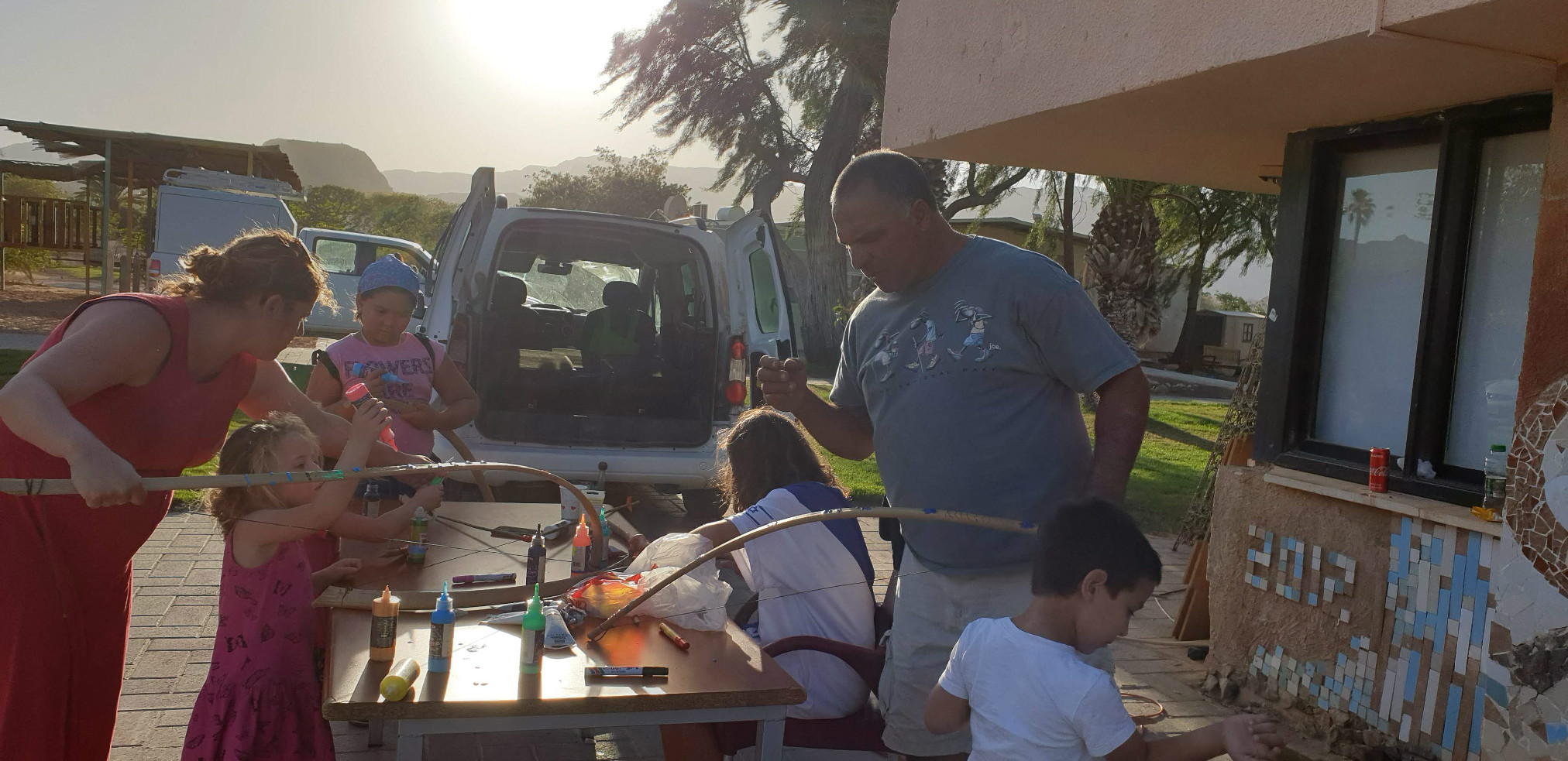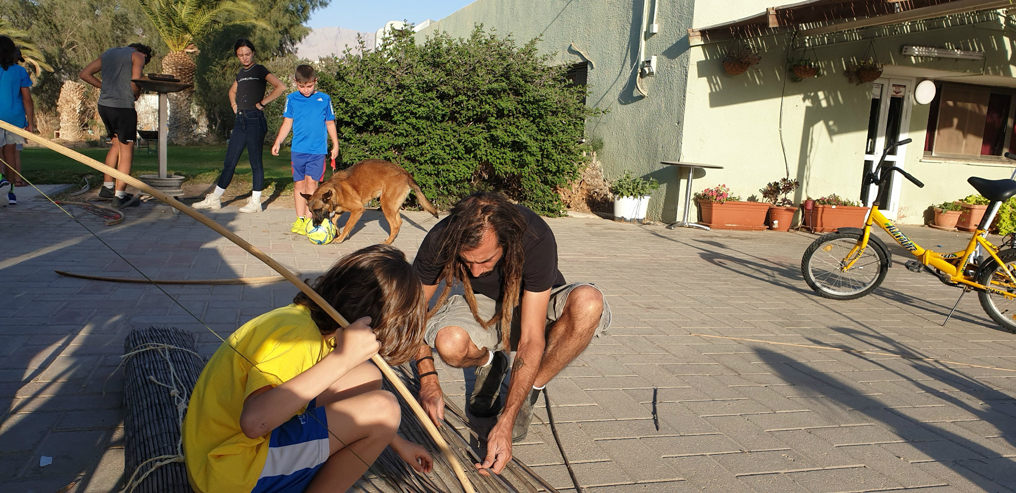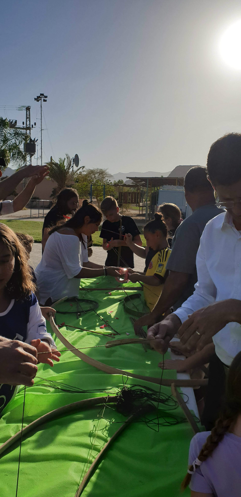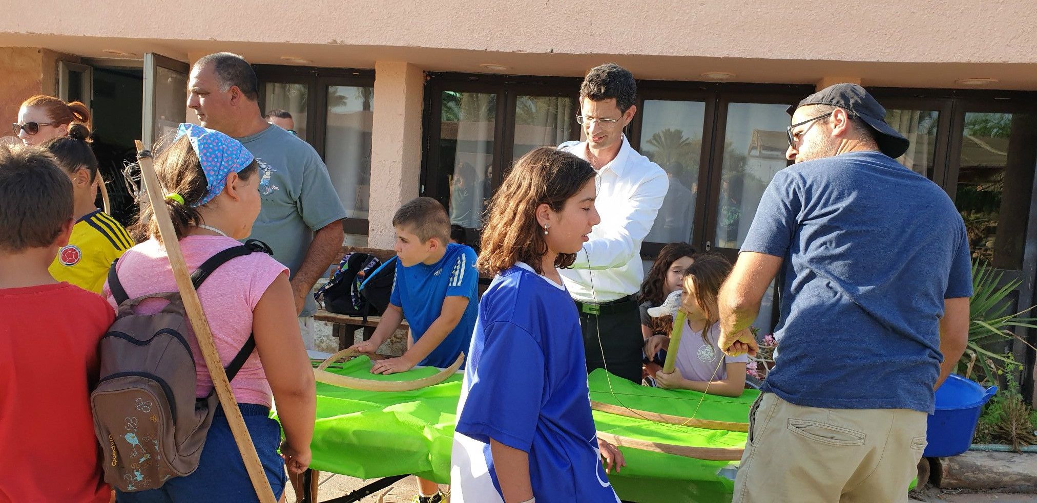 הכנות ללג בעומר - בניית חץ וקשת בעזרת גבי ריף וצוות התמרים