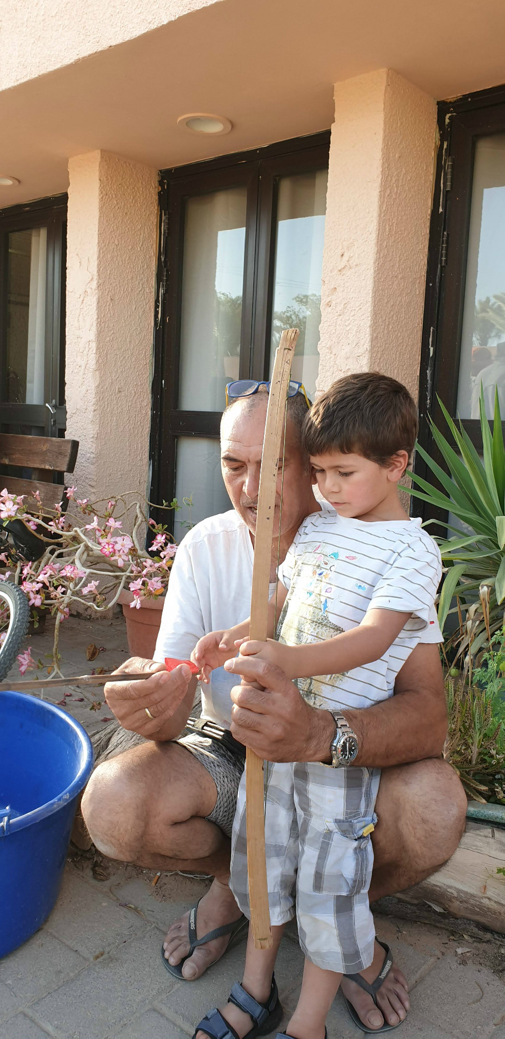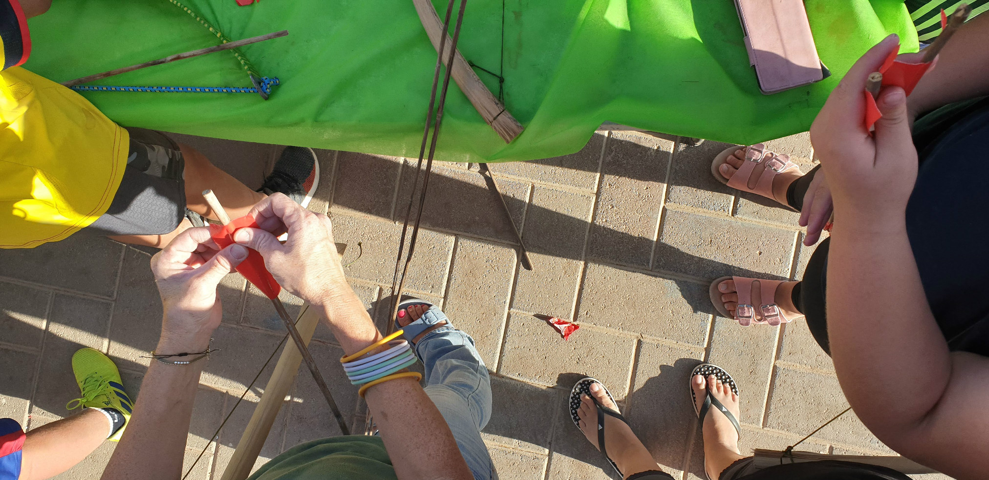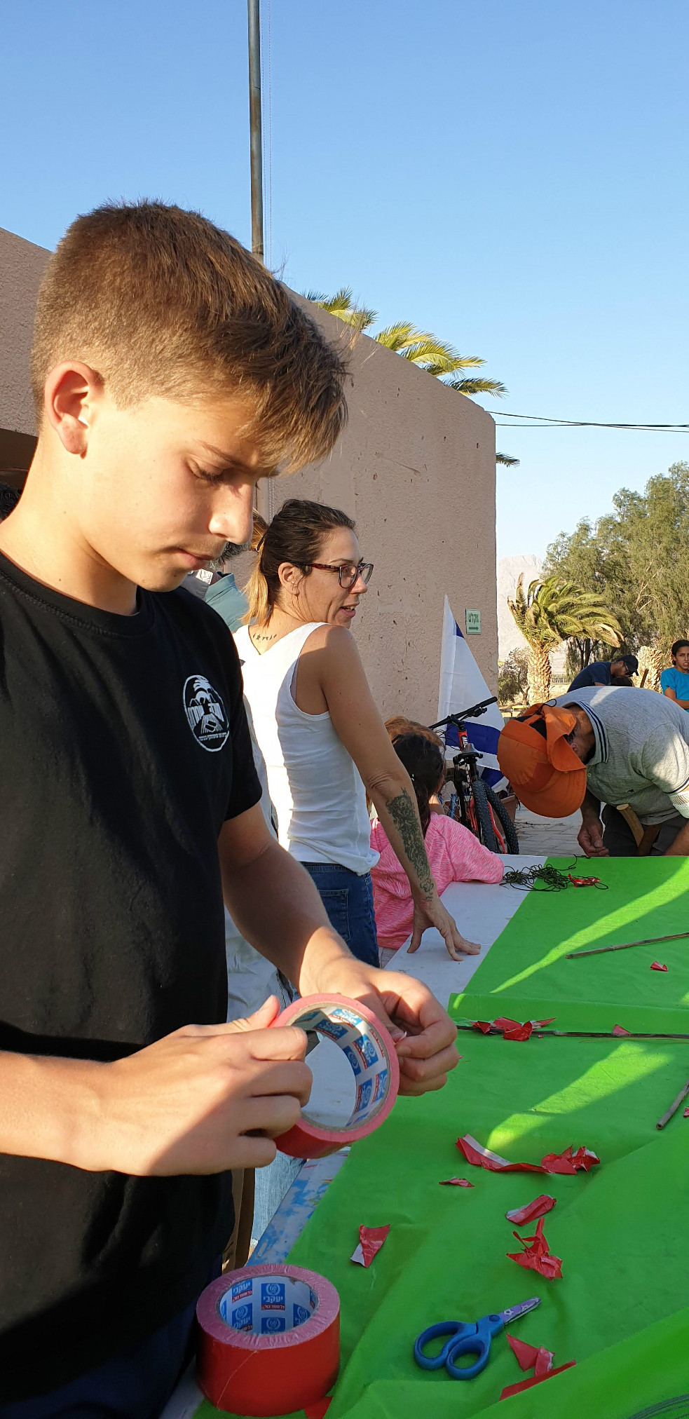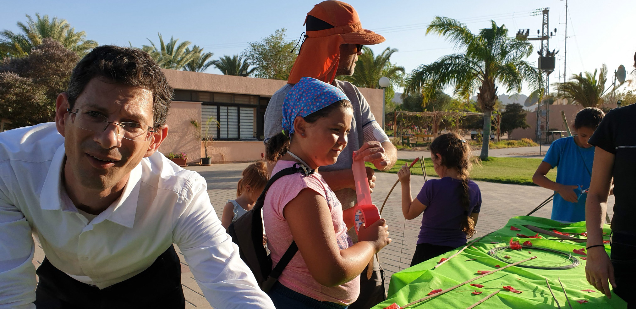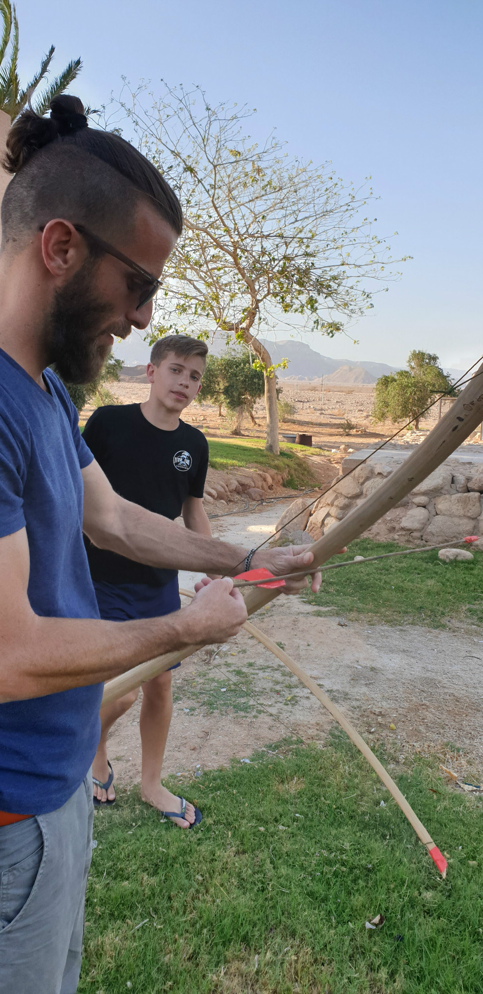 הכנות ללג בעומר - בניית חץ וקשת בעזרת גבי ריף וצוות התמרים